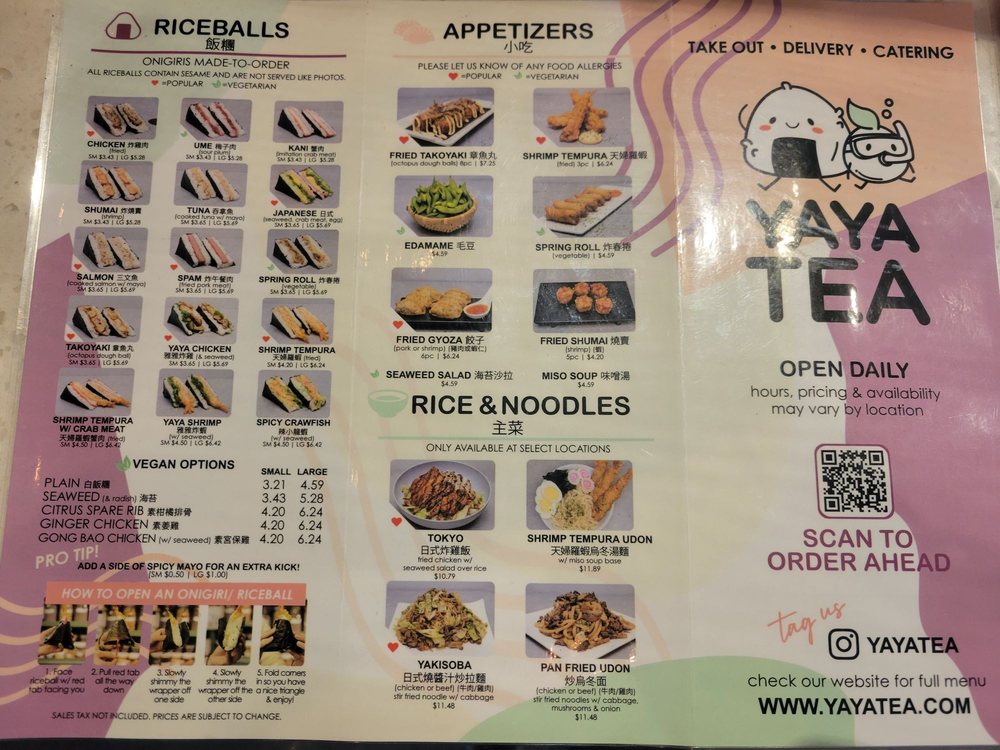 Yaya Tea Garden is a charming bubble tea and Japanese snack spot located in the heart of Chinatown, New York City. Known for their massive rice balls with flavorful fillings, customizable fruit teas, and cozy ambiance, Yaya Tea Garden offers a unique dining experience. The menu features a variety of Japanese snacks, stir-fry udon, and a wide selection of tea options to choose from. Customers rave about the delicious rice balls, especially the tempura with spicy mayo, and the refreshing fruit teas like First Love and Second Chance. With a casual yet classy atmosphere, Yaya Tea Garden is a great spot for a quick lunch, working remotely, or catching up with friends. Whether you're looking for a small bite or a satisfying meal, Yaya Tea Garden has something for everyone to enjoy. Don't miss out on their happy hour specials and be sure to indulge in their delectable treats next time you visit!